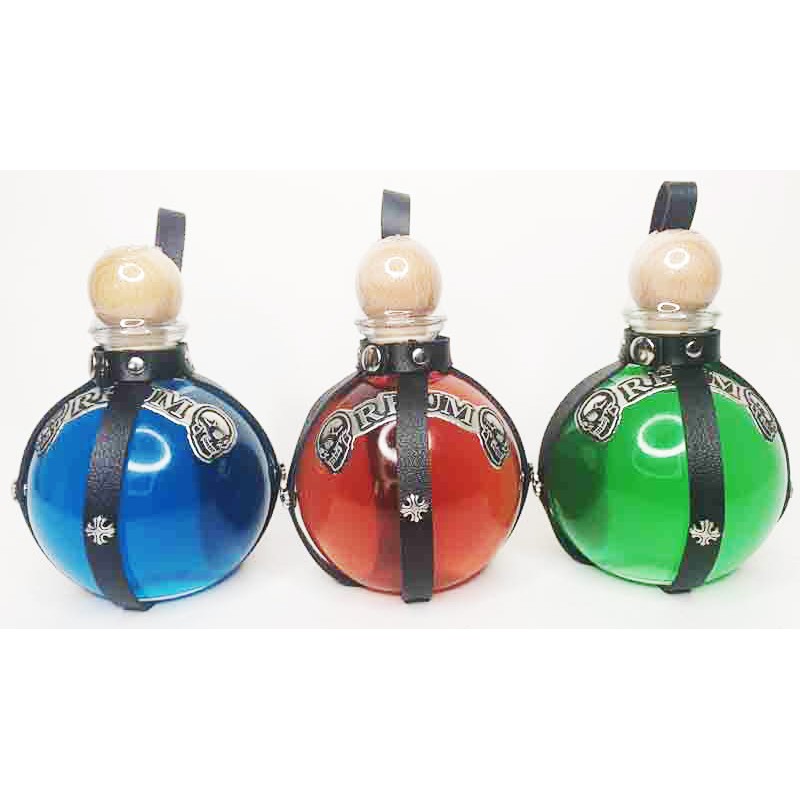 Gourdasse en verre, habillé de cuir.